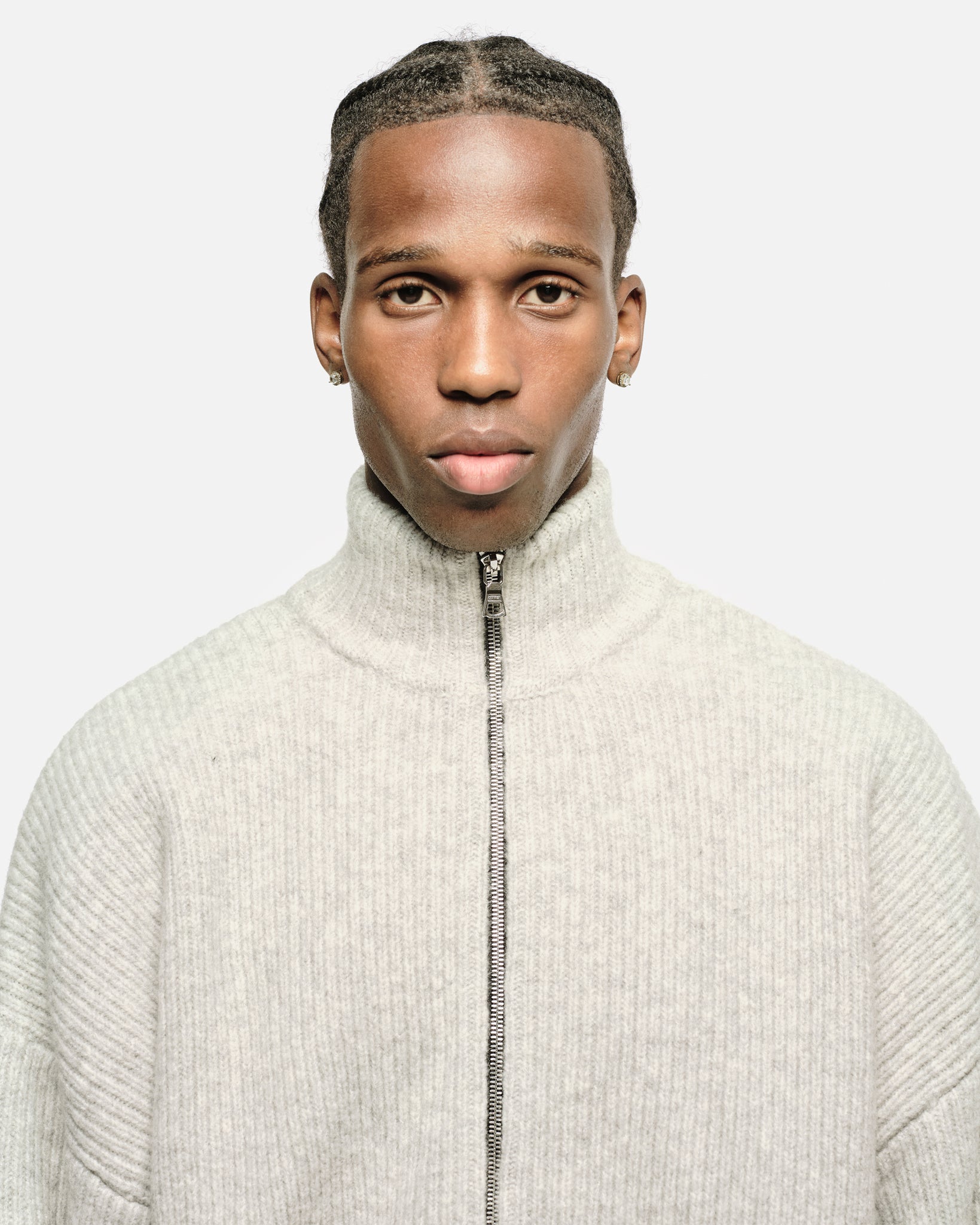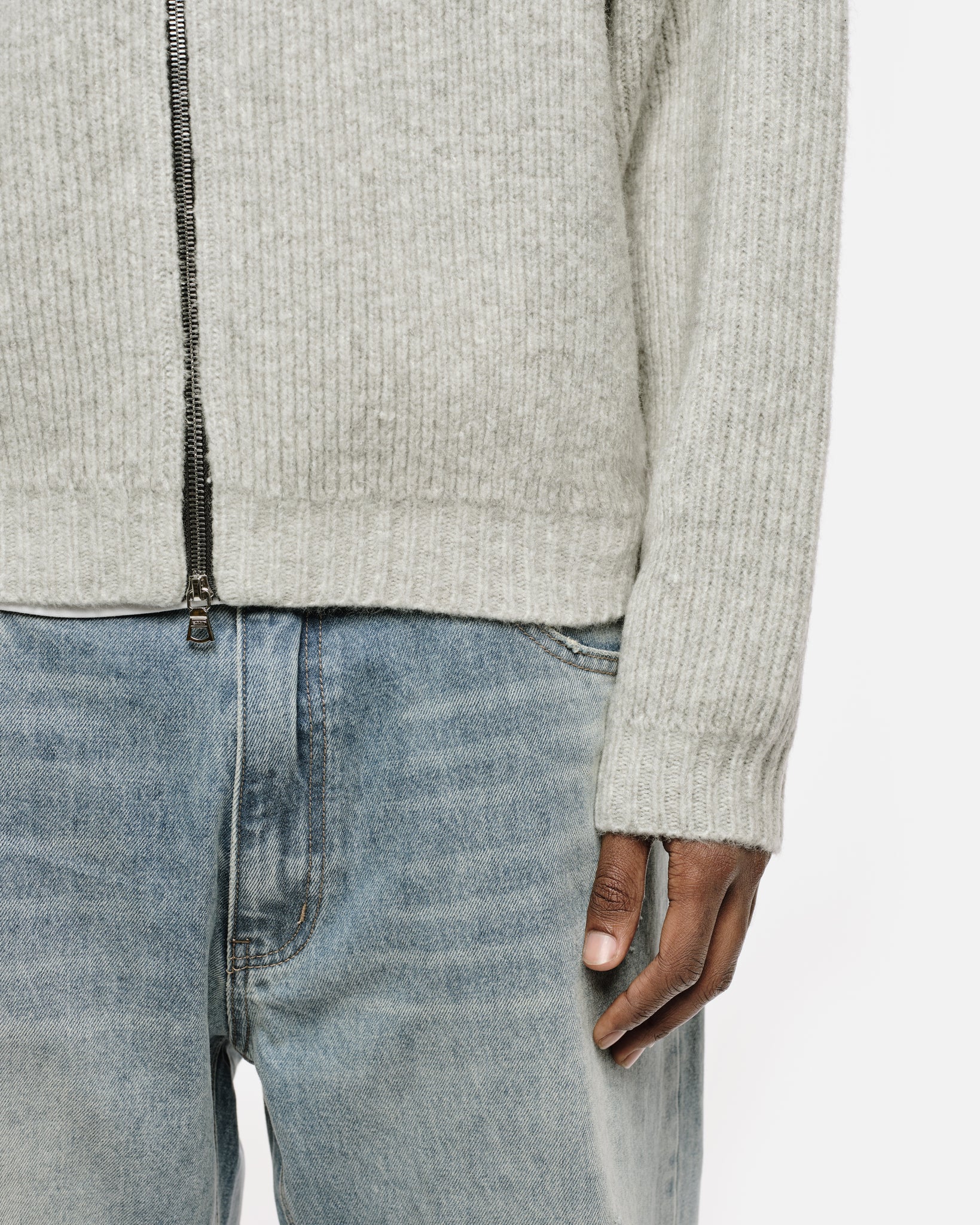 CHUNKY KNIT TRACK TOP - GREY
