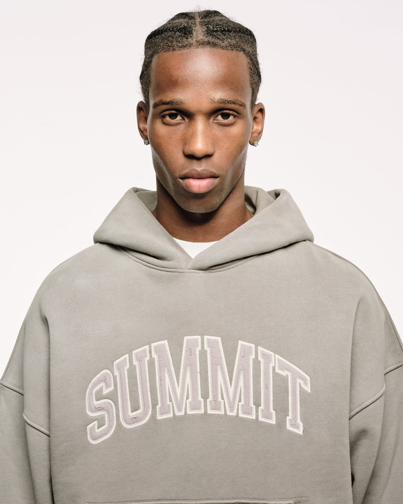 APPLIQUE HOODIE - SUN FADE GREY