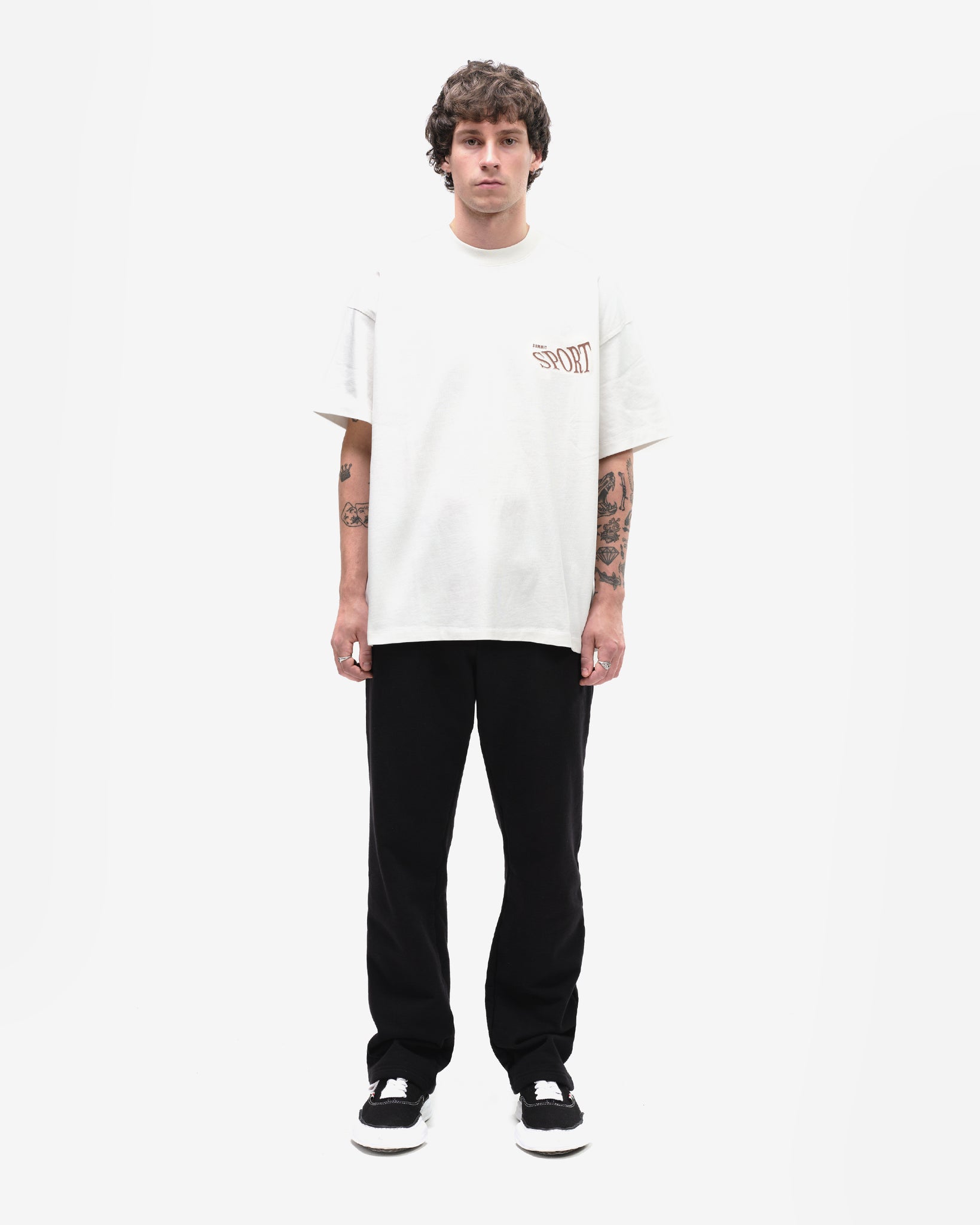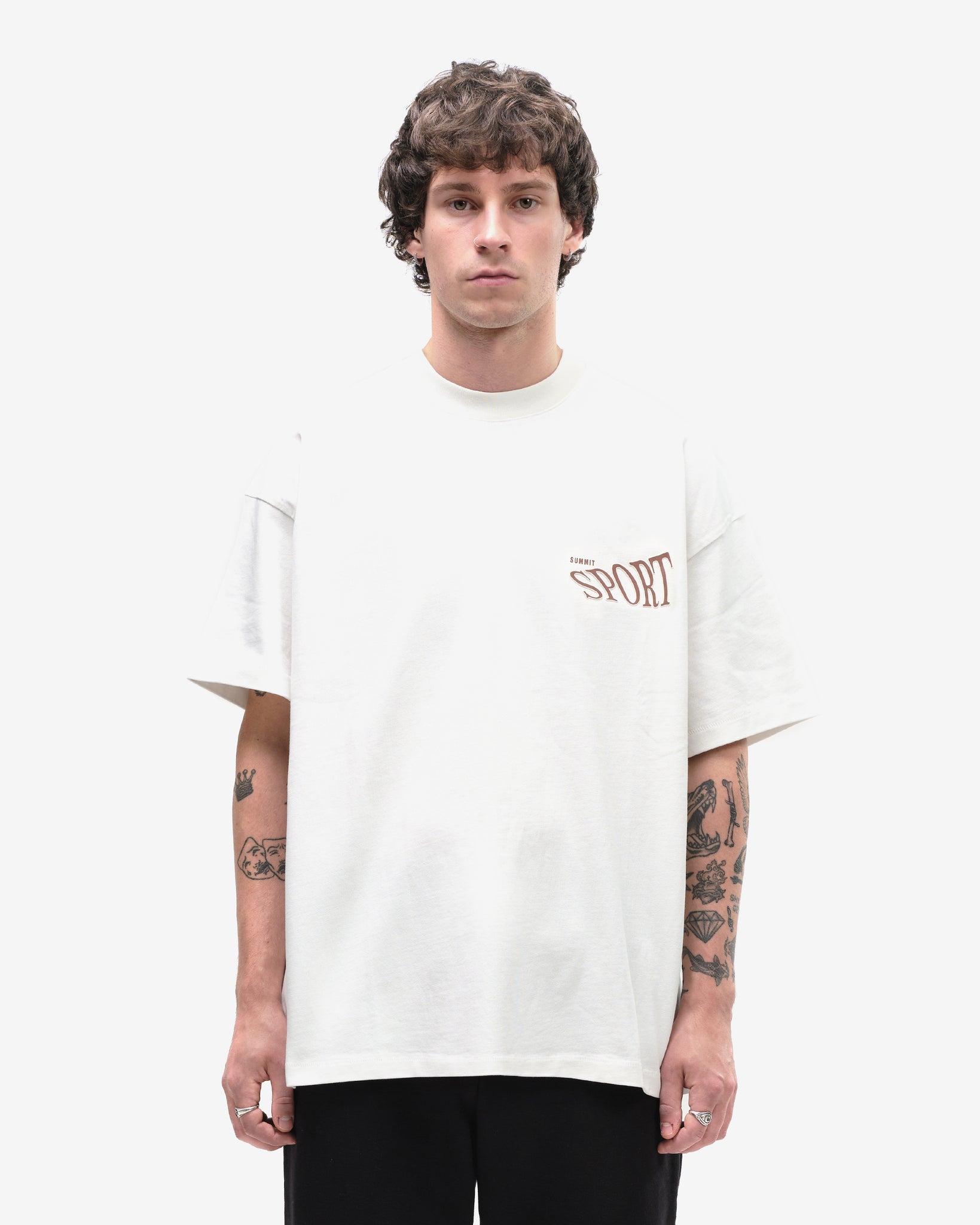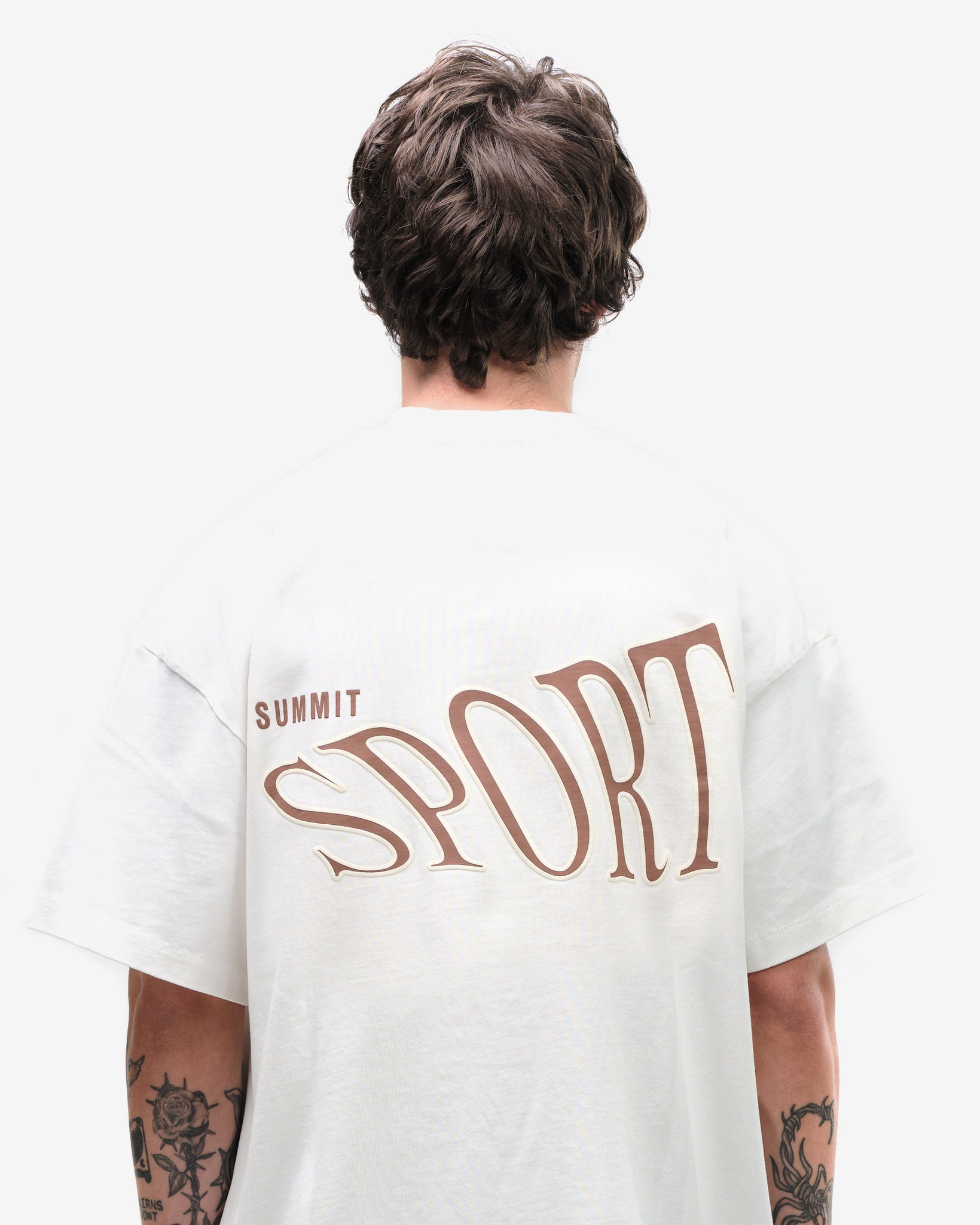 A boxy fit t-shirt inspired from true vintage t-shirts. Cut from a 350GSM single jersey which undergoes a garment dye and pre shrink wash for the ultimate last. Finished with a front and back 2 colour intricate puff print of our vintage sports team inspired sport logo. A very difficult process to print these due to the two colour blending puff print.